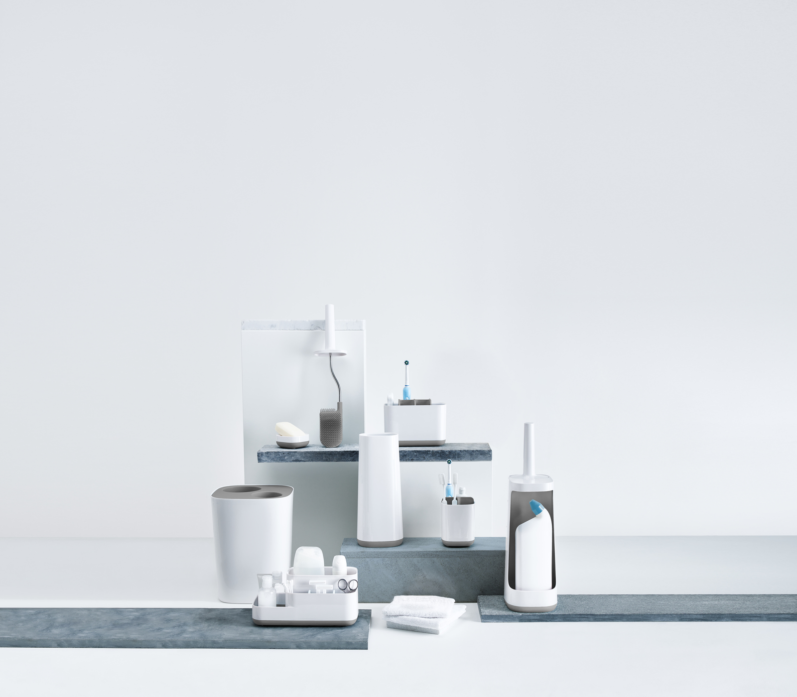 Ванная — одна из наиболее сложных для уборки комнат. Здесь вопрос экономии места особенно актуален. Для создания новых аксессуаров дизайнеры Joseph Joseph руководствовались принципами рационального использования пространства, эргономичностью и удобством сортировки.