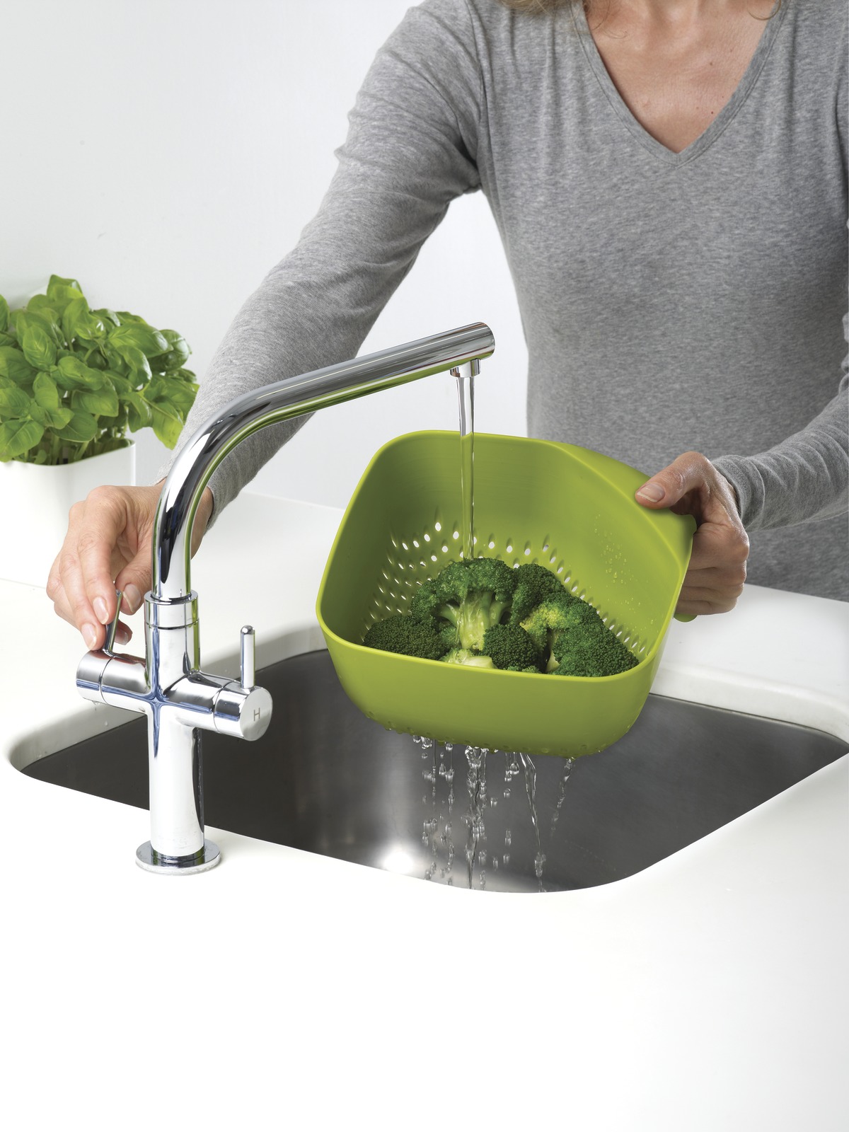 Новая версия дуршлагов Square получила эргономичные ручки. Теперь дуршлаги можно вставлять друг в друга для компактного хранения. Ручка служит и дополнительной опорой. Дуршлаг уверенно стоит на ровных поверхностях - в мойке или на столешнице. Дуршлаг удобно держать одной рукой. Вертикальные отверстия сделаны так, чтобы воды стекала максимально быстро.