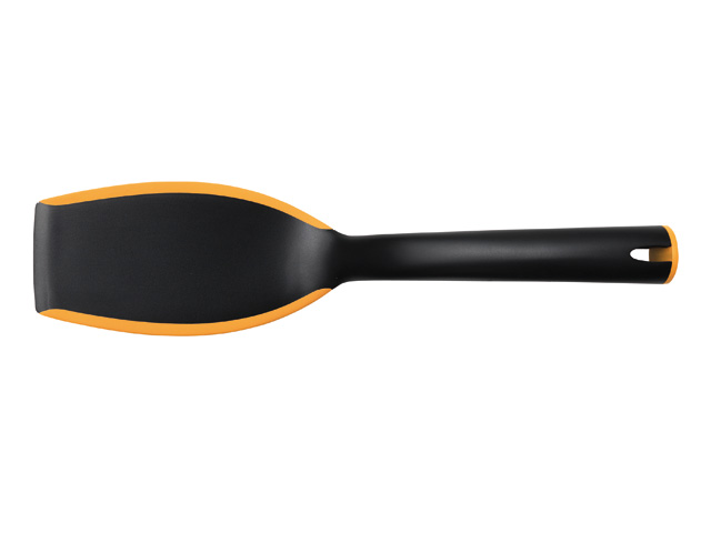 Лопатка плоская из специального укрепленного нейлона, края которой выполнены из жаропрочного силикона для комфортного использования.