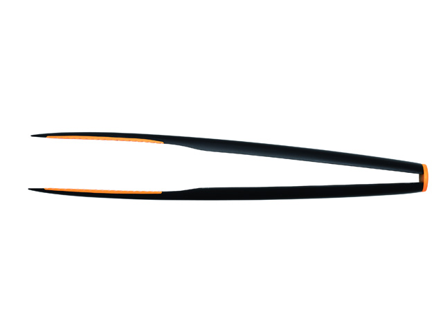 Щипцы с заострёнными концами и жаростойким ребристым покрытием из силикона.