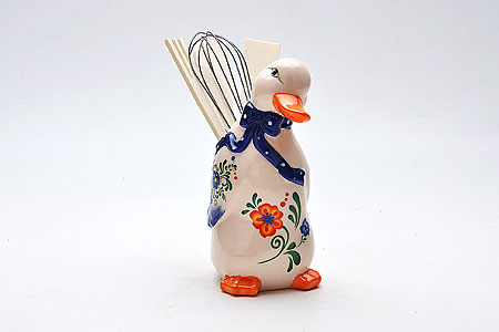 Подставка с набором кухонных принадлежностей LORAINE выполнена из доломитовой керамики в форме забавного гуся. В наборе 5 предметов: подставка из доломита, деревянная ложка, деревянная вилка, деревянная лопатка и металлический венчик. Такой оригинальный набор обязательно понравится каждой хозяйке и украсит любую кухню, а также станет замечательным подарком. Подходит для мытья в посудомоечной машине.