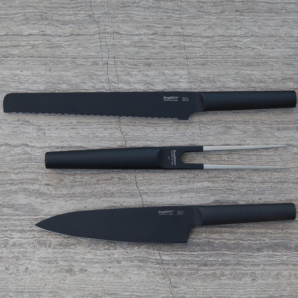 Уникальная серия ножей от BergHOFF. Ножи изготовлены из высококачественной стали с примесями хрома, молибдена и ванадия, что придает ножам гибкость и прочность одновременно. Для большей гигиеничности и надежности лезвия покрыты тефлоновым покрытием. Ножи тщательно сбалансированы.