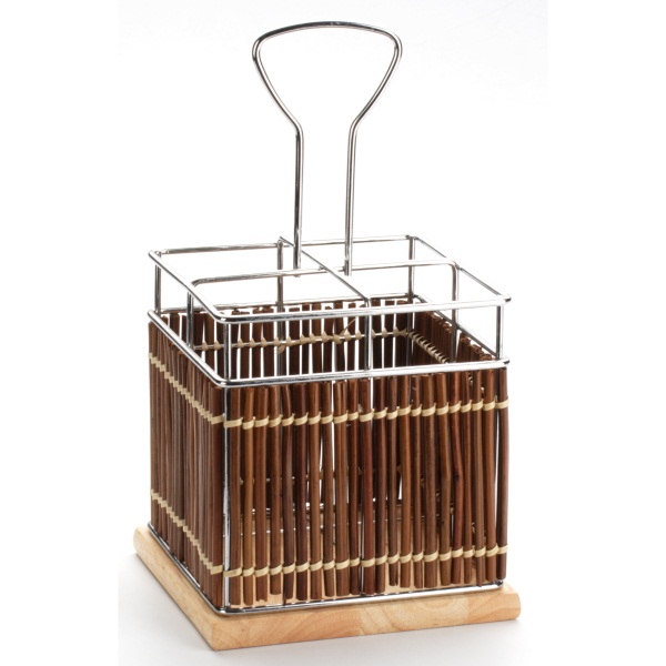 Подставка для столовых приборов Super Kristal SK-8639 - элегантная и функциональная. Каркас из хромированной стали имеет деревянную плетенную отделку, которая придает подставке особый стиль. Подставка имеет 4 секции, которые позволяют хранить отдельно друг от друга вилки, ложки, ножи и другую кухонную мелочь. Удобная и оригинальная подставка послужит прекрасным украшением вашего обеденного или праздничного стола.