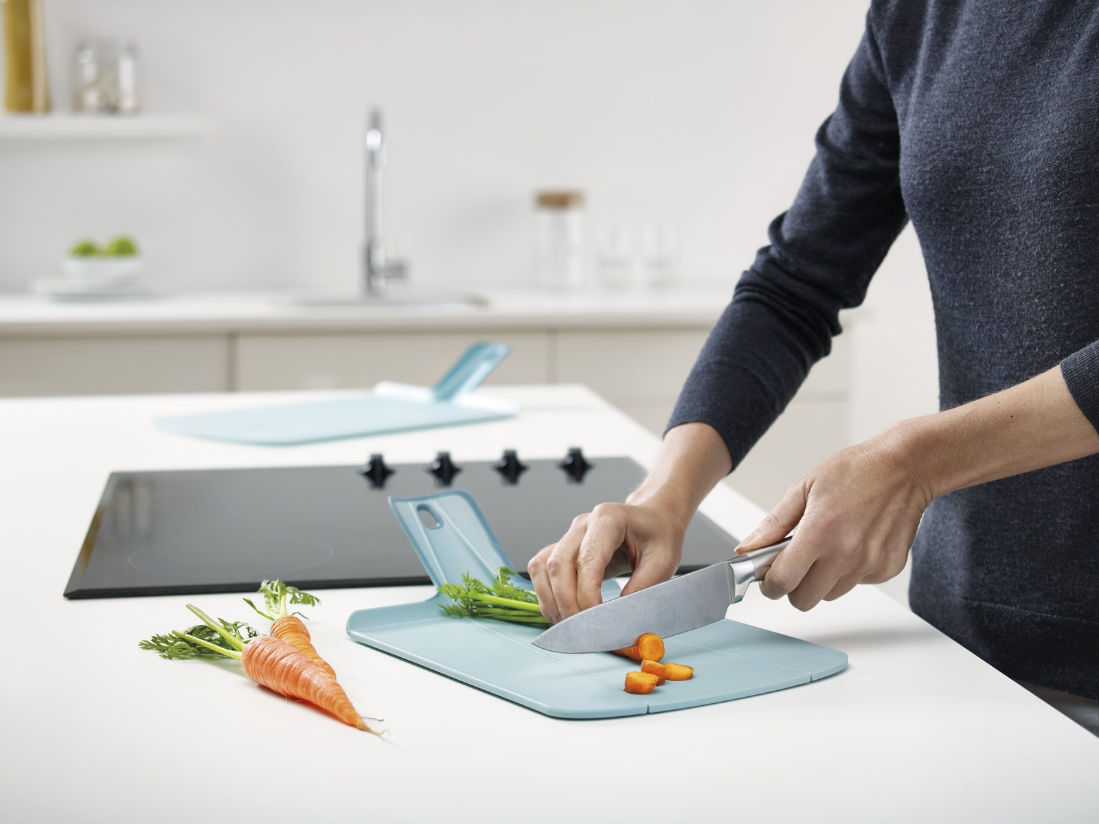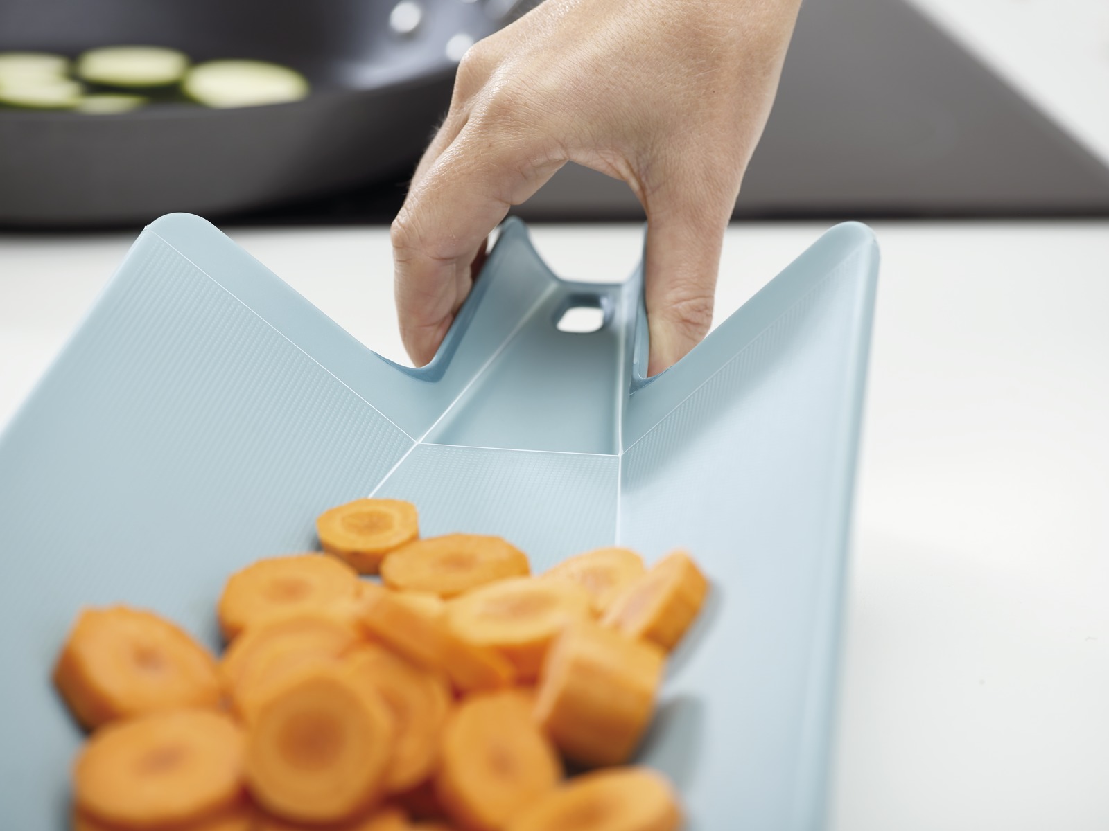 Разделочная доска Joseph Joseph Chop2Pot Plus Large представляет собой увеличенную модель обычной доски. Ее размеры позволяют легко нарезать большое количество продуктов, не пересыпая их каждый раз в отдельную емкость. <br> <br> Помимо этого, конструкция доски позволяет одним движением руки превратить ее в удобный совок. Он позволит быстро и аккуратно пересыпать уже нарезанные продукты в любую емкость. Сама доска изготовлена из пищевого пластика. Свойства этого материала позволяют сохранять остроту ножей более продолжительное время даже при очень частом использовании. Прорезиненные концы ручки очень хорошо фиксируют доску в руке, поэтому вы сможете полностью сконцентрироваться на самом процессе приготовления пищи.