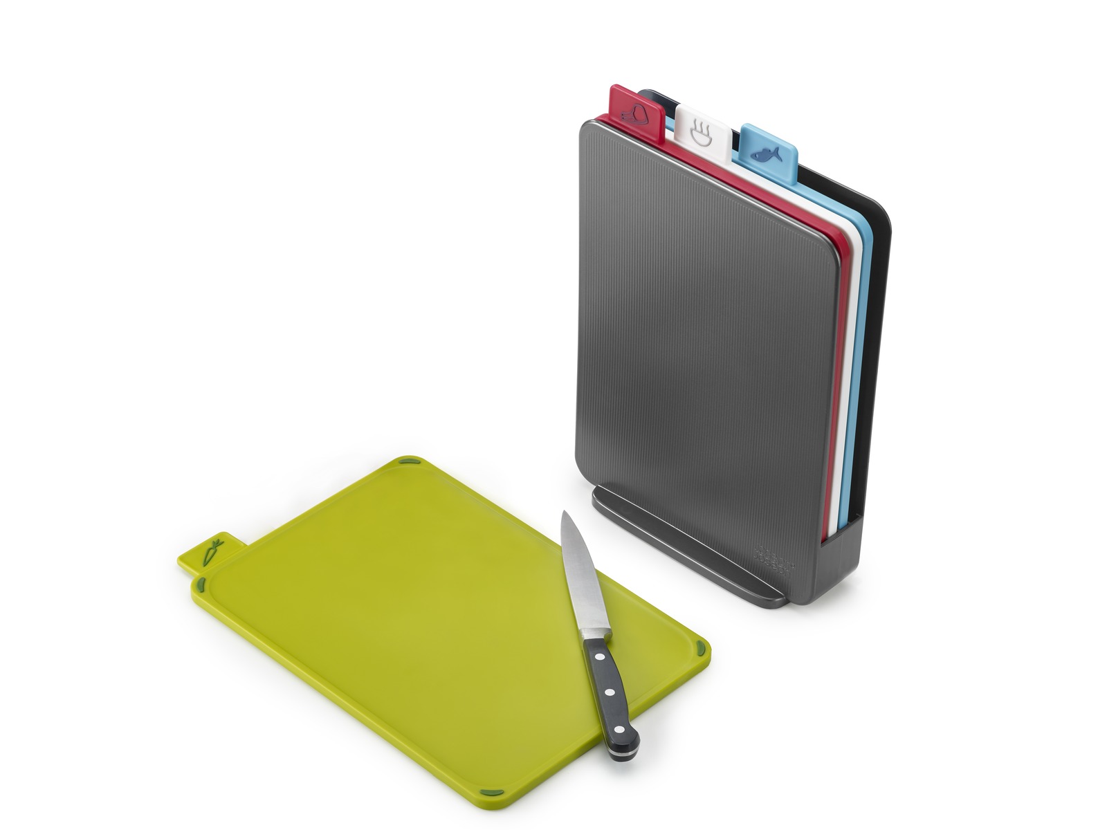 Index Mini - Набор из 4-х компактных цветных разделочных досок, идеально подходящих для нарезки небольшого количества продуктов, а специальный кейс экономит пространство и позволяет легко и быстро извлечь необходимую доску.
