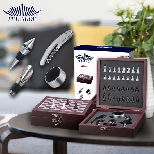 Подарочный набор для вина Peterhof с шахматами PH-12884 станет отличным приобретением и замечательным оригинальным подарком. В наборе представлены самые необходимые приборы для потребления вина и шахматы для интересного времяпровождения.