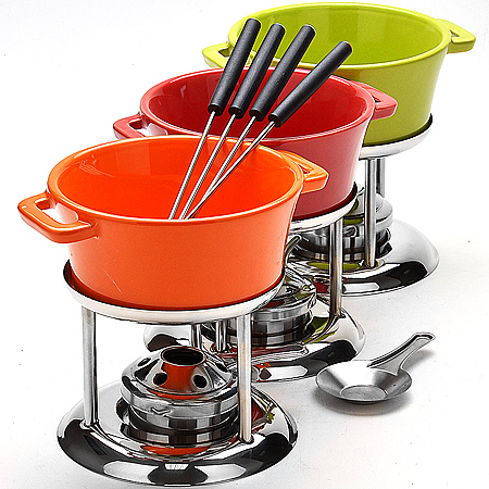 Набор для фондю рассчитан на 4 персоны и выполнен из нержавеющей стали и керамики. В комплект входит цветная керамическая чаша для соуса с двумя удобными ручками, стойка с подсвечником, подставка и 4 шпажки для фондю. Красивый, с современным дизайном, этот набор будет прекрасно смотреться на столе и придаст вашему празднику, коктейльной вечеринке или романтическому ужину особое настроение. Используйте этот набор для приготовления сырного или сладкого фондю. Этот универсальный набор позволит каждому из ваших гостей побыть своим личным шеф-поваром. Подходит для мытья в посудомоечной машине.