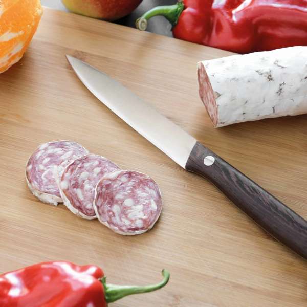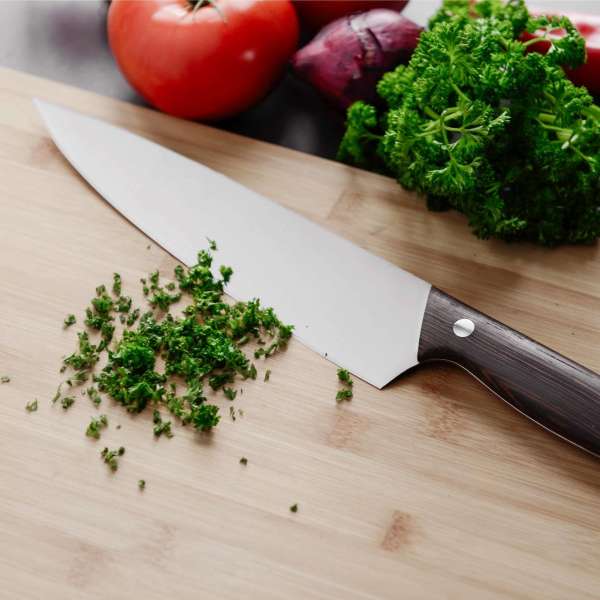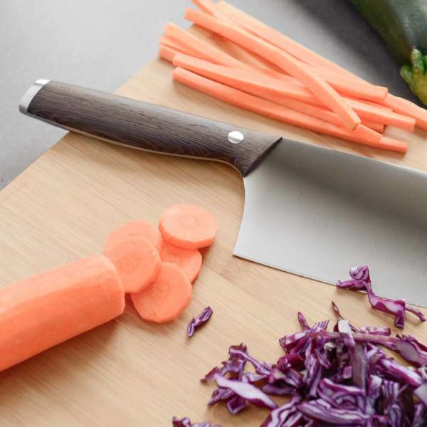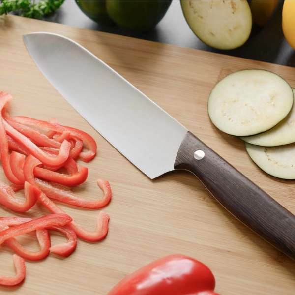 Эргономичные рукоятки выполнены из нержавеющей стали и деревянного покрытия на трех заклепках, которое стойчиво к трещинам, не обесцвечивается, не впитывает жир.