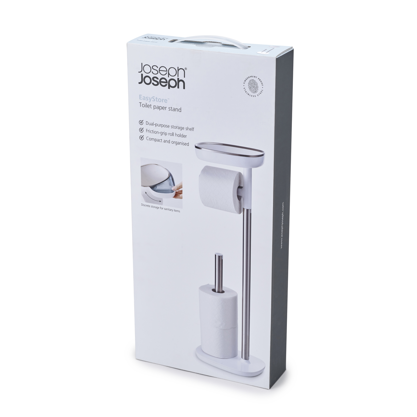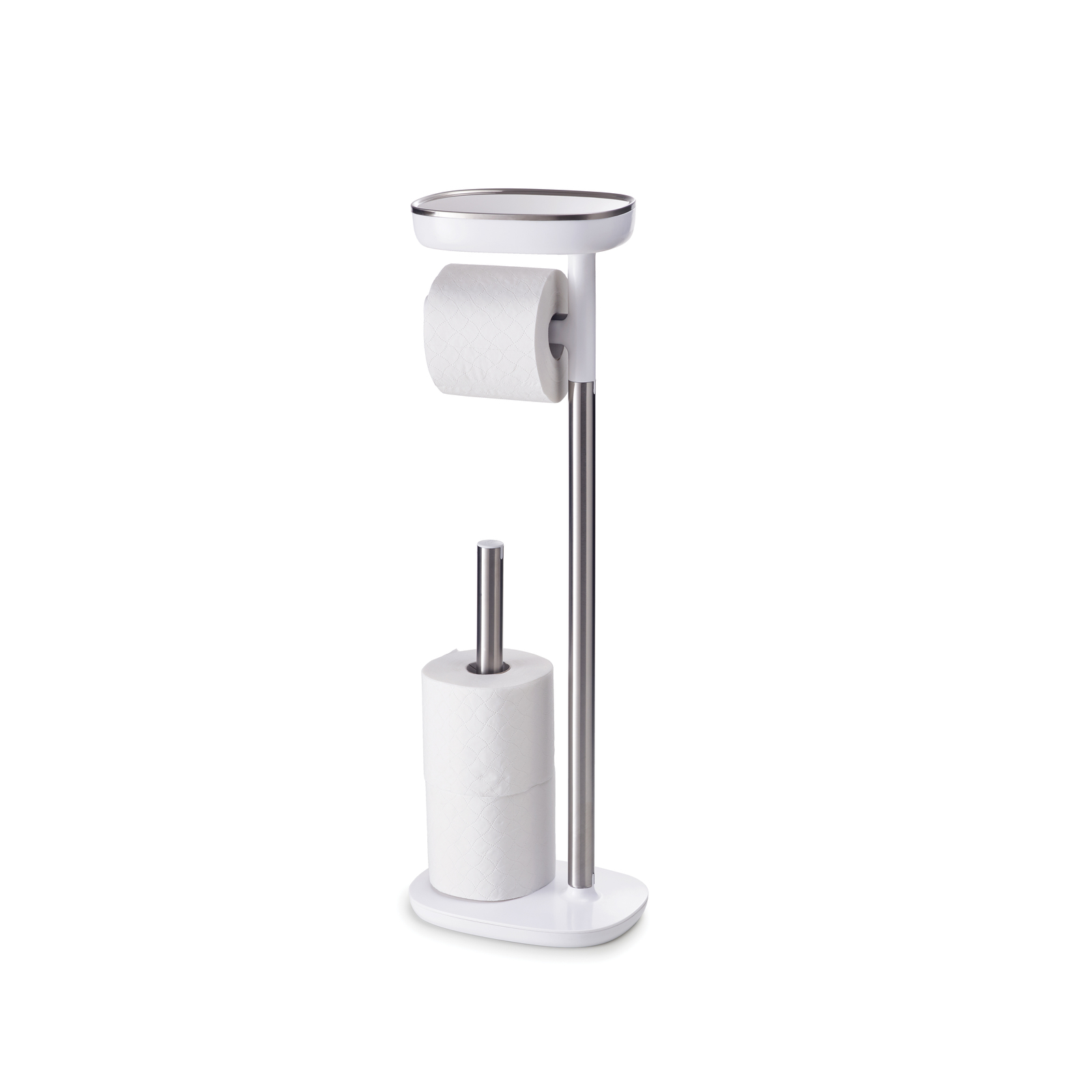 Никогда не знаете, куда положить телефон, когда заходите в ванную комнату? В держателе для туалетной бумаги от Joseph Joseph есть небольшая полка, на которую можно положить телефон, книгу, украшения, место под подносом открывается - там удобно хранить средства гигиены.