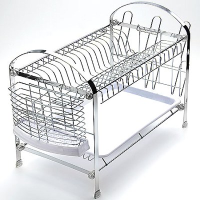 подставка для посуды 2х ярусная MB 4003, длина 45 см,ширина 25 см, материал: нержавеющая хромированная сталь. Включает подставку под столовые приборы и подставку под кружки, а также пластиковый поддон.