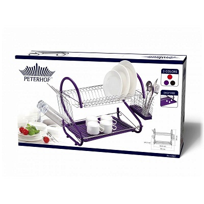 Многофункциональная компактная сушилка для посуды. Материал: нержавеющая сталь. Размер: 56х38х24.5 см. Цвета: фиолетовый, красный, черный.