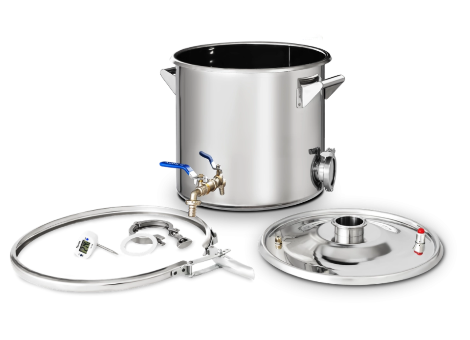 РЕЖИМ ПРИГОТОВЛЕНИЯ БРАГИПерегонный куб можно использовать в качестве бродильной емкости. Сталь марок AISI 304 и 430 полностью инертна к кислой среде, не окисляется и не меняет вкус напитка. Для созревания браги нужно установить на бак заглушку с «носиком», а подключенный шланг погрузить в воду.Бродильная ёмкость