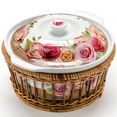 Жаропрочная кастрюля для запекания и хранения продуктов MB 24790, объем 1 л., диаметр 18 см., корзина из ротанга. Керамические формы для запекания нагреваются равномерно и длительное время сохраняют тепло, благодаря чему блюда приобретают особенный аромат и сохраняют полезные вещества. Керамическая посуда натуральна, а потому при нагреве не выделяет никаких вредных веществ и лишних запахов. Керамические формы и кастрюли Mayer Boch имеют привлекательный внешний вид, поэтому блюда, запеченные в них можно подавать на стол, не перекладывая в другую посуду, при этом они остаются горячими долгое время. Керамическая посуда выдерживает высокие перепады температуры, поэтому ее можно использовать в духовке, микроволновой печи, а также для хранения пищи в холодильнике. Можно мыть в посудомоечной машине. Порадуйте себя новыми кулинарными шедеврами с жаропрочными керамическими формами Mayer Boch!