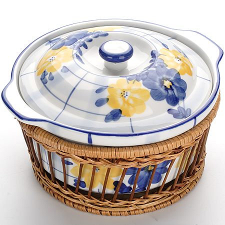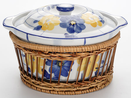 Жаропрочная кастрюля для запекания и хранения продуктов MB 8858, объем 1 л., диаметр 18 см., корзина из ротанга. Керамические формы для запекания нагреваются равномерно и длительное время сохраняют тепло, благодаря чему блюда приобретают особенный аромат и сохраняют полезные вещества. Керамическая посуда натуральна, а потому при нагреве не выделяет никаких вредных веществ и лишних запахов. Керамические формы и кастрюли Mayer Boch имеют привлекательный внешний вид, поэтому блюда, запеченные в них можно подавать на стол, не перекладывая в другую посуду, при этом они остаются горячими долгое время. Керамическая посуда выдерживает высокие перепады температуры, поэтому ее можно использовать в духовке, микроволновой печи, а также для хранения пищи в холодильнике. Можно мыть в посудомоечной машине. Порадуйте себя новыми кулинарными шедеврами с жаропрочными керамическими формами Mayer Boch!