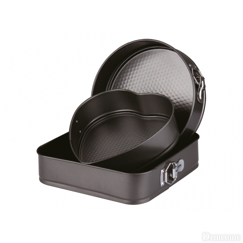 Набор форм для выпечки Peterhof PH 15367: 3 вида. Диаметр: 24см, 26см и 28см. Антипригарное покрытие. Надежные металлические замки для удобного выпекания и извлечения выпечки из формы. Вафельное нижнее основание обеспечивает легкое освобождение выпечки. Возможность мыть в посудомоечной машине.