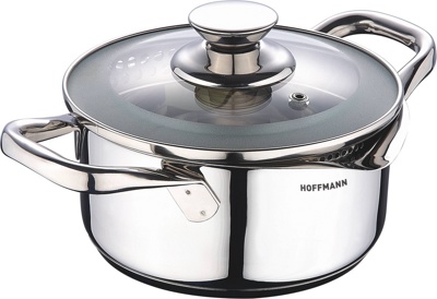 Кастрюля из нержавеющей стали HM-5620, объем 3,6л., многослойное дно, отверстие для слива воды, крышка с паровыпуском, подходит для всех видов плит.