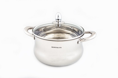 Кастрюля из нержавеющей стали HM-5720, объем 3.9л., многослойное дно, крышка с паровыпуском, подходит для всех видов плит.