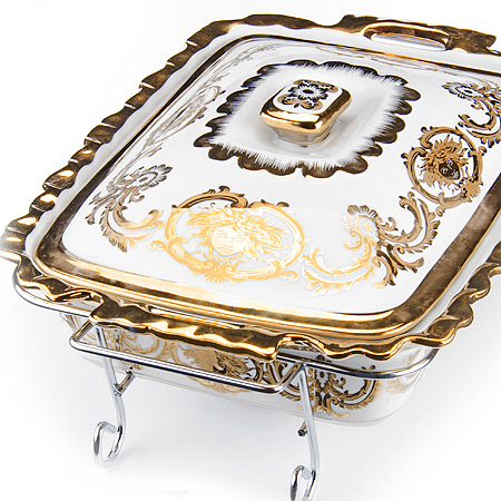 Мармит LORAINE выполнен из керамики белого цвета, украшенной рисунком. Керамическая чаша с удобными ручками располагается на стальной подставке с двумя подсвечниками для чайных свечей (входят в комплект). Свечи, устанавливающиеся на подставке, нагревают чашу снизу, таким образом поддерживая нужную температуру приготовленного блюда. Керамическая крышка с удобной ручкой плотно прикрывает чашу сверху, в свою очередь также не давая остыть блюду. Благодаря своему элегантному дизайну, мармит с приготовленным блюдом можно сразу подавать на стол, не перекладывая еду на сервировочные тарелки. Изящный, с современным дизайном, мармит украсит любой праздничный стол, а блюда в нем будут всегда теплыми и ароматными. Керамическая чаша (без подставки) подходит для использования в духовом шкафу и микроволновой печи. Подходит для мытья в посудомоечной машине. Подходит для хранения в холодильнике.