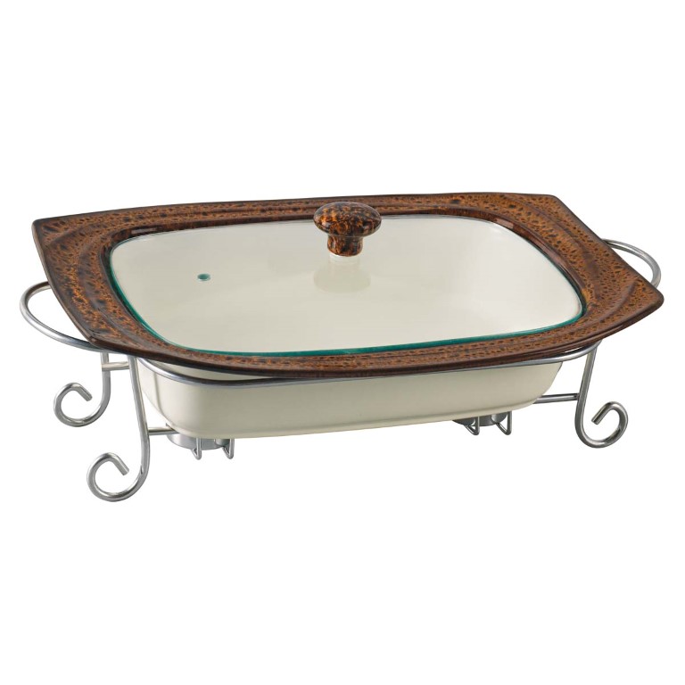 Керамические мармиты Mercury изготовлены из высококачественной термостойкой керамики. Керамическая чаша с удобными ручками располагается на стальной подставке с одним подсвечником для чайных свечей. Свеча, устанавливающиеся на подставке, нагревает чашу снизу и обеспечивает поддержание нужной температуры приготовленного блюда. Крышка плотно закрывает чашу сверху, в свою очередь также не давая остыть блюду. Благодаря своему элегантному дизайну, мармит с приготовленным блюдом можно сразу подавать на стол, не перекладывая еду на сервировочные тарелки.