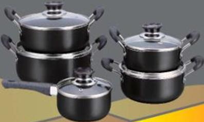 Набор посуды из алюминия с антипригарным мраморным покрытием, 10 предметов , ковш 1 шт -1,2 л. . (14 см.) кастрюли 4 шт.- 1,5 л.(16 см),2,0 л.(18 см), 2,6 л.(20 см.), 3,5 л.(22 см.), крышки- 5 шт. ЧЕРНЫЙ