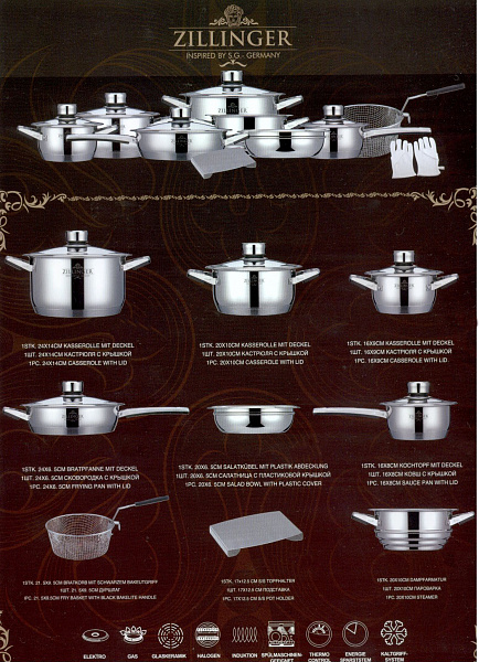 На проятжении многих лет Zillinger известен как надежный производитель высококачественной посуды. Посуда под маркой Zillinger изготавливаются вручную.