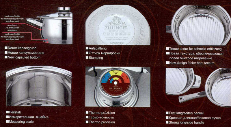 Посуда производства Zillinger предназначена для легкого и быстрого приготовления пищи. Она обеспечивает необычайные кулинарные результаты, лего и быстро моется.
