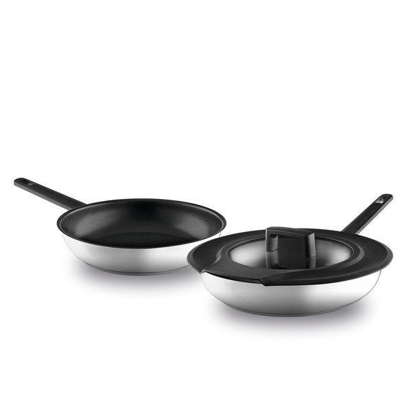 Эти сковороды подходят для всех типов плит, но в первую очередь они идеальны для варочных панелей со встроенной в их поверхность вытяжкой, такие варочные становятся сегодня всё более и более популярными. Благодаря продуманным запатентованным технологиям пар из сковороды направляется прямиком к вытяжному каналу. Особенности: высококачественная нержавеющая сталь самое современное экологичное антипригарное покрытие запатентованная технология гарантирует оптимальное удаление пара отлично подходит для энергоэффективного приготовления пищи ненагревающиеся ручки стеклянная крышка со встроенными воздушными каналами Состав набора 1шт - сковорода 24см с антипригарным покрытием 1шт сковорода 28см без покрытия 1шт универсальная крышка.
