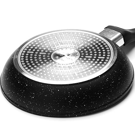 Сковорода с мраморной крошкой MAYER&BOCH выполнена из качественного литого алюминия и снабжена антипригарным покрытием особой прочности. Покрытие антипригарное жаропрочное, защищает сковороду от царапин, является экологически чистым и полностью безопасным, без вредных соединений и примесей. За счет того, что пища не пригорает и не пристает к покрытию сковороды, ее легко и быстро мыть. Прочное индукционное дно сковороды устойчиво к повреждениям и деформации. Эргономичная ручка из бакелита не нагревается и не скользит. Такая сковорода является незаменимой для жарки и тушения различных блюд. Подходит для использования на всех типах плит. Подходит для мытья в посудомоечной машине.