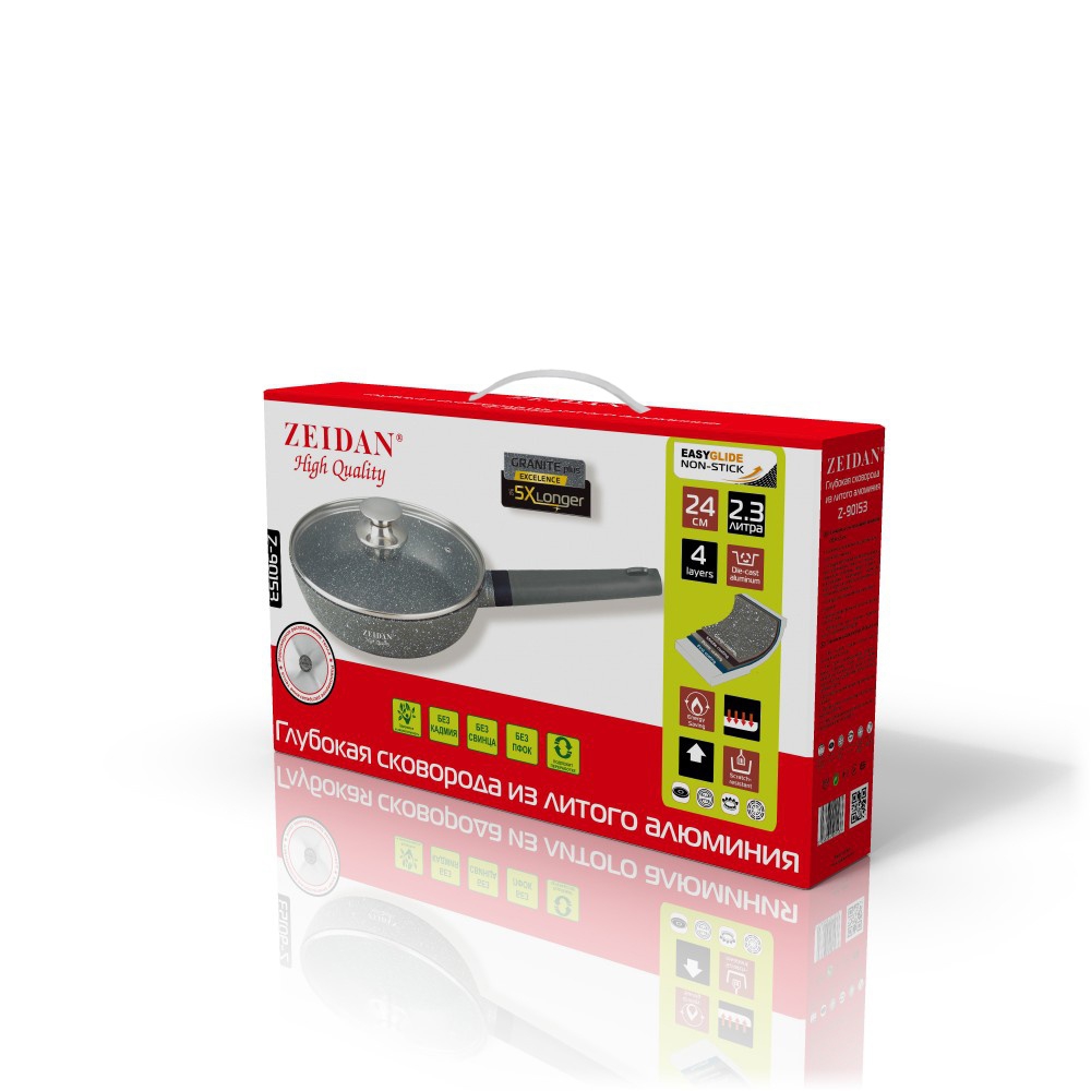 Сковорода Ø24x5,5 см - изготовлена из высококачественного литого алюминия с внутренним антипригарным каменным покрытием с гранитной крошкой "GRANITE plus".