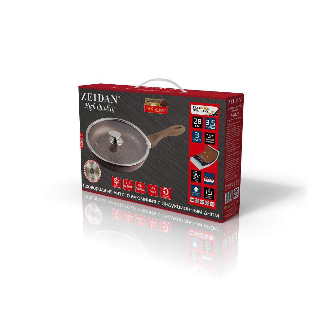 Сковорода Ø 28 см изготовлена из высококачественного литого алюминия C ВНУТРЕННИМ И ВНЕШНИМ КАМЕННЫМ ПОКРЫТИЕМ "GRANITE", имеющим повышенную прочность и отличные антипригарные свойства. Литой алюминий отличается долговечностью и способностью быстро и равномерно нагреваться и аккумулировать тепло, что приводит к экономии энергии и способствует быстрому приготовлению пищи.