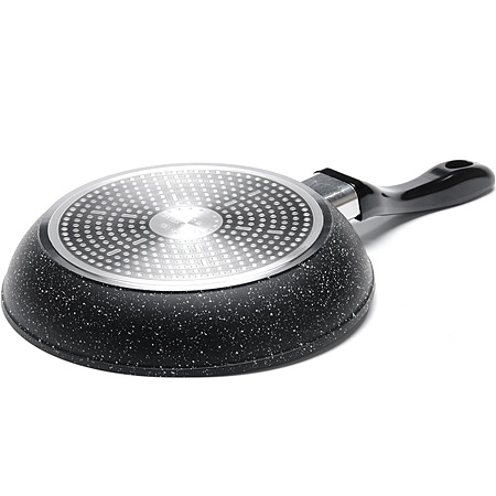 Сковорода с мраморной крошкой MAYER&BOCH выполнена из качественного литого алюминия и снабжена антипригарным покрытием особой прочности. Покрытие антипригарное жаропрочное, защищает сковороду от царапин, является экологически чистым и полностью безопасным, без вредных соединений и примесей. За счет того, что пища не пригорает и не пристает к покрытию сковороды, ее легко и быстро мыть. Прочное индукционное дно сковороды устойчиво к повреждениям и деформации. Эргономичная ручка из бакелита не нагревается и не скользит. Такая сковорода является незаменимой для жарки и тушения различных блюд. Крышка – термостойкое стекло. Подходит для использования на всех типах плит. Подходит для мытья в посудомоечной машине.