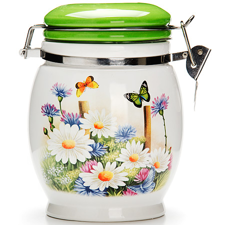 Банка для сыпучих продуктов LORAINE изготовлена из доломитовой керамики высокого качества. Банка прекрасно подойдет для хранения различных сыпучих продуктов: специй, чая, кофе, сахара, круп и многого другого. Крышка плотно закрывается с помощью металлического зажима-клипсы, дольше сохраняя свежесть продуктов. Гладкая и ровная поверхность обеспечивает легкую очистку. Такая банка не только сэкономит место на вашей кухне, но и украсит интерьер. Оригинальный дизайн и красивое оформление позволит сделать ее отличным подарком на любой праздник. Подходит для мытья в посудомоечной машине.