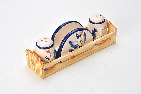Набор для специй LORAINE состоит из солонки, перечницы, салфетницы и деревянной подставки. Предметы набора выполнены из доломитовой керамики высокого качества и красиво оформлены. Отверстия, в которые засыпаются специи, закрыты силиконовыми пробками. Благодаря своим небольшим размерам набор не займет много места на вашей кухне. Дизайн, эстетичность и функциональность набора позволят ему стать достойным дополнением к кухонному инвентарю.