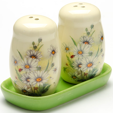 Набор для специй состоит из солонки и перечницы на подставке. Предметы набора выполнены из высококачественной доломитовой керамики и оформлены стильным рисунком. Дизайн, эстетичность и функциональность набора позволят ему стать достойным дополнением к кухонному инвентарю. Подходит для мытья в посудомоечной машине.