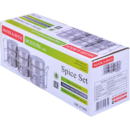 Набор MAYER&BOCH из 3-х баночек для специй выполнен из высококачественной нержавеющей стали и стекла. Баночки располагаются на оригинальной металлической подставке, что делает их хранение еще более удобным. Набор предназначен для хранения различных ароматных специй, герметично закрывающиеся крышки сохранит ваши специи всегда свежими. Современный, элегантный дизайн набора украсит интерьер любой кухни. Изделия не впитывают запах и легко моются.
