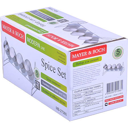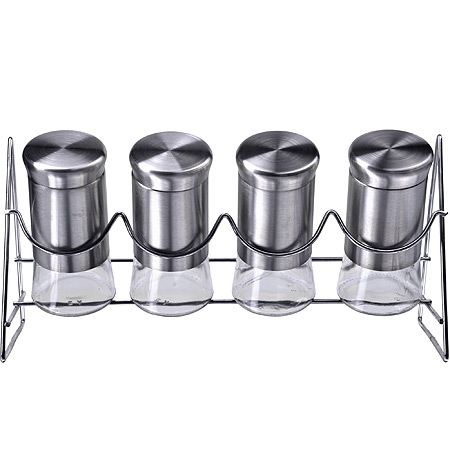 Набор MAYER&BOCH из 4-х баночек для специй выполнен из высококачественной нержавеющей стали и стекла. Баночки располагаются на оригинальной металлической подставке, что делает их хранение еще более удобным. Набор предназначен для хранения различных ароматных специй, герметично закрывающиеся крышки сохранит ваши специи всегда свежими. Современный, элегантный дизайн набора украсит интерьер любой кухни. Изделия не впитывают запах и легко моются.