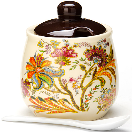 Сахарница LORAINE изготовлена из прочной керамики высокого качества c цветным рисунком. Сахарница закрывается удобной крышкой. В комплекте идет небольшая керамическая ложечка. Такая сахарница понравится любителям яркого оригинального дизайна и станет неотъемлемым атрибутом чаепития. Предметы набора можно мыть в посудомоечной машине. Не применять абразивные моющие средства.