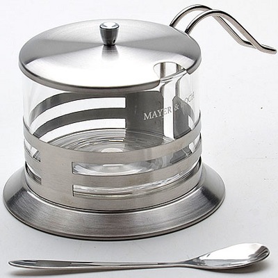сахарница МВ 21259 стеклянная в корпусе из нержавеющей стали, металлическая ложка в комплекте, колба 8.5*5.5см