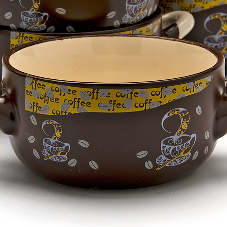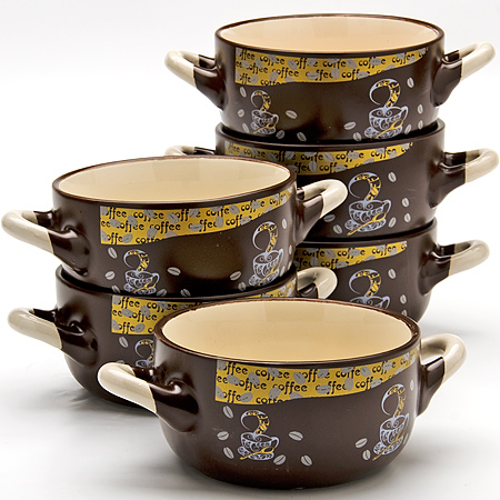 Набор из 6-ти супниц LORAINE выполнен из качественной керамики в коричнево-бежевых тонах и украшен декоративным рисунком. В керамической посуде блюда сохраняют свои вкусовые качества, кроме того она обладает термической и химической прочностью. Благодаря оригинальному дизайну, такие супницы отлично подойдут как для ежедневного использования, так и для праздничной сервировки стола. Изделия оснащены двумя удобными ручками. Подходит для использования в микроволновой печи. Подходит для мытья в посудомоечной машине.