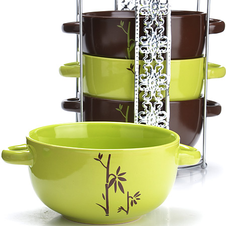 Набор из 4-х супниц LORAINE выполнен из высококачественной керамики и украшен декоративным рисунком. Супницы компактно располагаются на оригинальной подставке из нержавеющей стали и не занимают много места при хранении. В керамической посуде блюда сохраняют свои вкусовые качества, кроме того она обладает термической и химической прочностью. Благодаря оригинальному дизайну, такие супницы отлично подойдут как для ежедневного использования, так и для праздничной сервировки стола. Изделия оснащены двумя удобными ручками. В наборе: 4 супницы, 1 подставка. Подходит для мытья в посудомоечной машине.