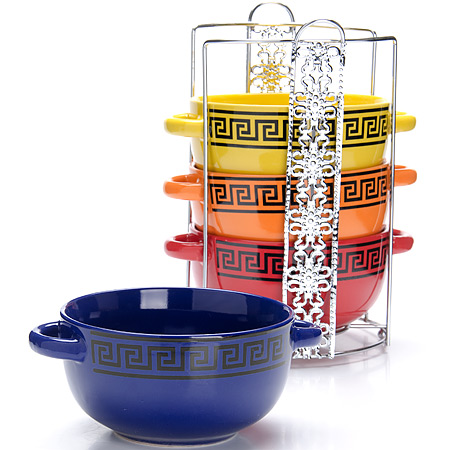 Набор из 4-х супниц LORAINE выполнен из высококачественной керамики и украшен декоративным рисунком. Супницы компактно располагаются на оригинальной подставке из нержавеющей стали и не занимают много места при хранении. В керамической посуде блюда сохраняют свои вкусовые качества, кроме того она обладает термической и химической прочностью. Благодаря оригинальному дизайну, такие супницы отлично подойдут как для ежедневного использования, так и для праздничной сервировки стола. Изделия оснащены двумя удобными ручками. В наборе: 4 супницы, 1 подставка. Подходит для мытья в посудомоечной машине.