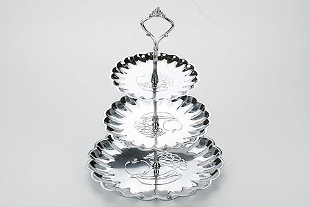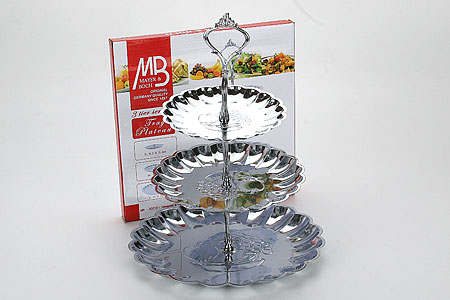 3-х ярусная конфетница MAYER&BOCH выполнена из нержавеющей стали. Каждая хозяйка знает, что многоуровневая конфетница незаменимая вещь на кухне. Тому есть множество причин, но самая очевидная это то, что она экономит место, ведь когда большое застолье, не всегда все лакомства умещаются на столе, а такая многоуровневая конфетница решает эту проблему. Конфетница имеет три яруса и предназначена для подачи фруктов и различных сладостей (конфет, печенья, зефира, вафель, пряников и т.д.). Так как она выполнена из нержавеющей стали, то можно не беспокоиться о ее деформации, а хранить ее очень удобно, так как она разбирается и превращается в 3 отдельные тарелки и 3 маленьких стойки, поэтому для хранения подойдет обычный кухонный выдвижной ящик. Конфетница MAYER&BOCH станет прекрасным дополнением к набору посуды и отлично подойдет для сервировки праздничного стола.