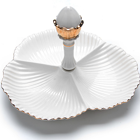 Тортовница с колпаком Mayer&Boch MB 110-201. Форма: круглая. Материал: доломит. Цвет: белый. Декор: рельефный узор "ракушка". Диаметр: 30см.