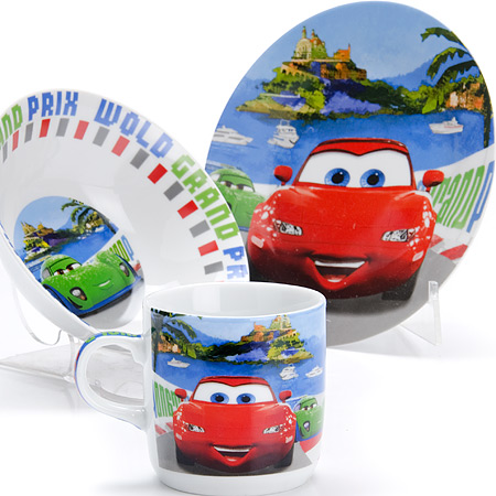 Набор посуды 3 пр. Материал: керамика. Рисунок: «Тачки». Тарелка суповая: D15 см. Тарелка обеденная: D17,5 см. Кружка: 230 мл. Размер упаковки: 20 х 9 х 18,5 см. Вес: 760 г.