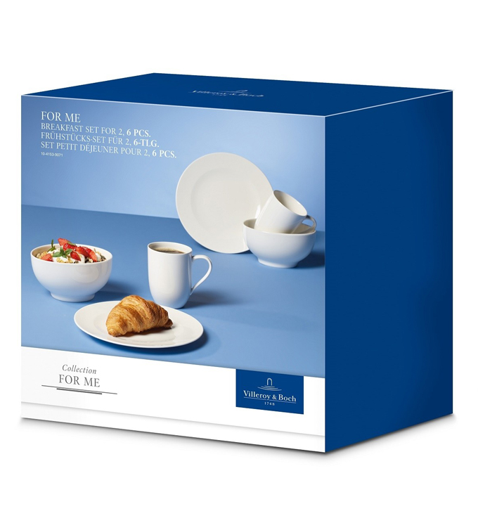 В набор For Me входит: 2 кружки 370 мл, 2 салатника/пиалы 750 мл, 2 тарелки 21,5 см.