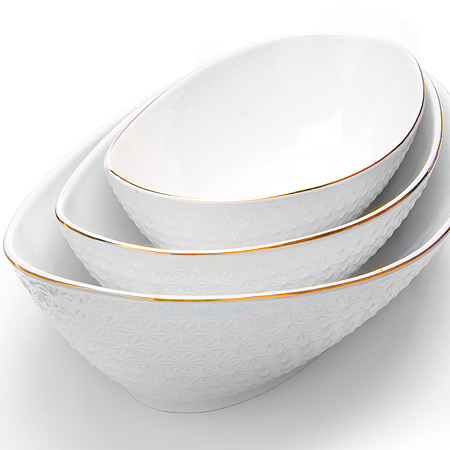 Набор салатников LORAINE великолепная и изящная модель, которая станет превосходным дополнением, как для вашего повседневного стола, так и праздничной сервировки. Прекрасно подойдет как для подачи салатов или гарниров. Приготовление пищи с использованием такой посуды становиться более приятным и легким процессом, так как в ней удобно перемешивать продукты и ее легко мыть. Подходит для мытья в посудомоечной машине.