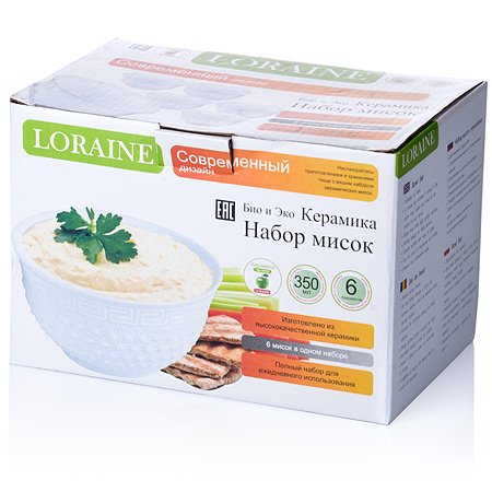 Набор из 6-ти салатниц LORAINE выполнен из качественной керамики в белом цвете и украшен золотой окантовкой. В керамической посуде блюда сохраняют свои вкусовые качества, кроме того она обладает термической и химической прочностью. Благодаря оригинальному дизайну, такие супницы отлично подойдут как для ежедневного использования, так и для праздничной сервировки стола. Подходит для мытья в посудомоечной машине.