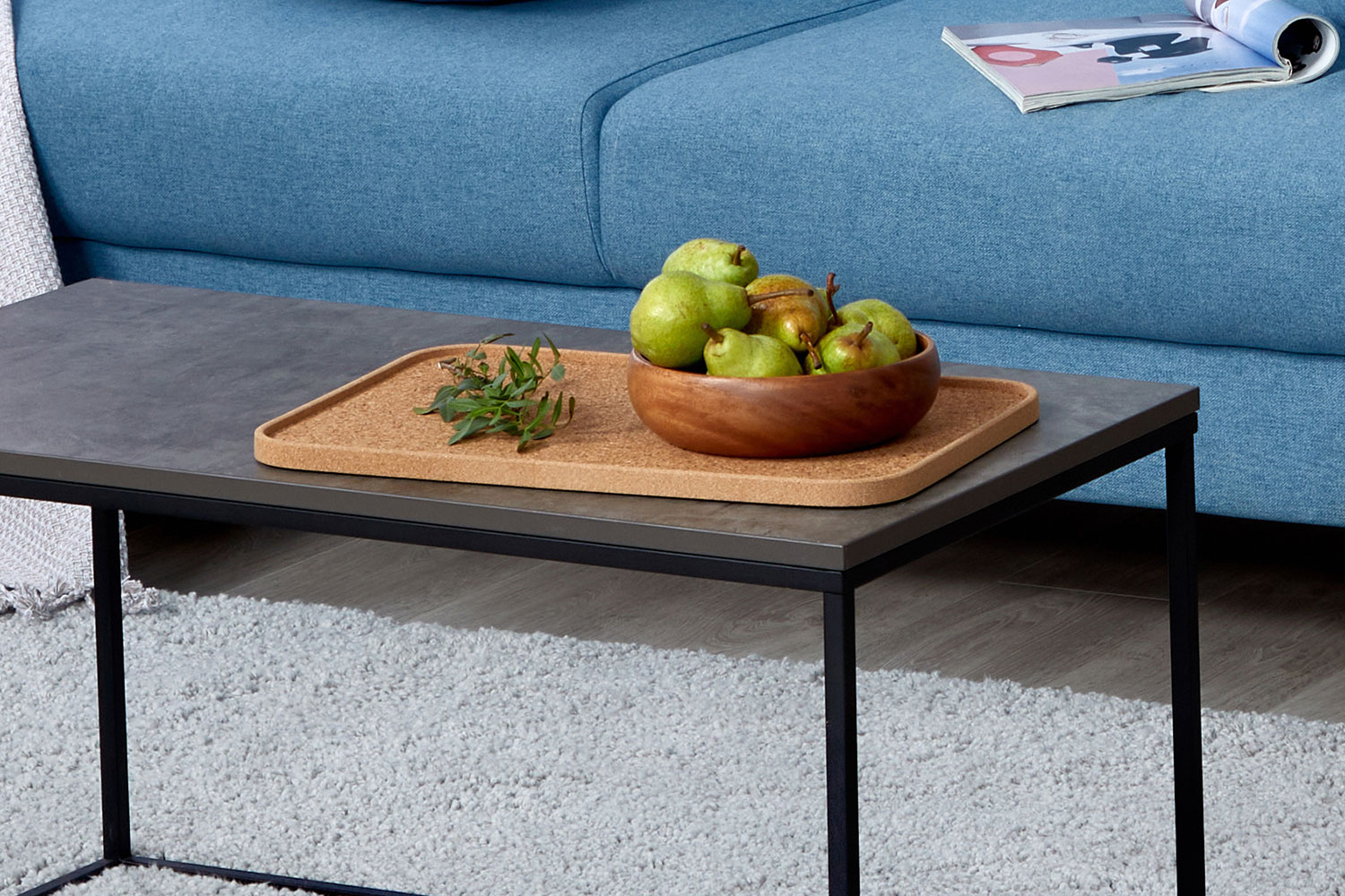 У подноса есть бортик, его удобно брать в руки и держать. Поскольку пробка не боится влаги, случайно пролитый чай не испортит его внешний вид.