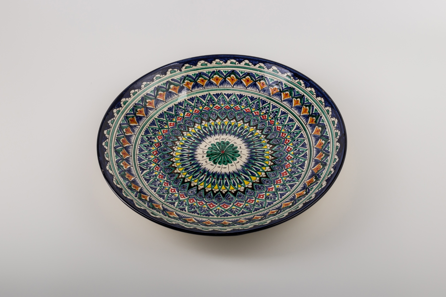Узбекская посуда расписывается вручную, благодаря чему купив ляган для плова, Вы получаете в свое распоряжение уникальное и самобытное блюдо. Ляган - это традиционное большое блюдо для плова, шашлыка и др. пищи. Ручная роспись, узоры.