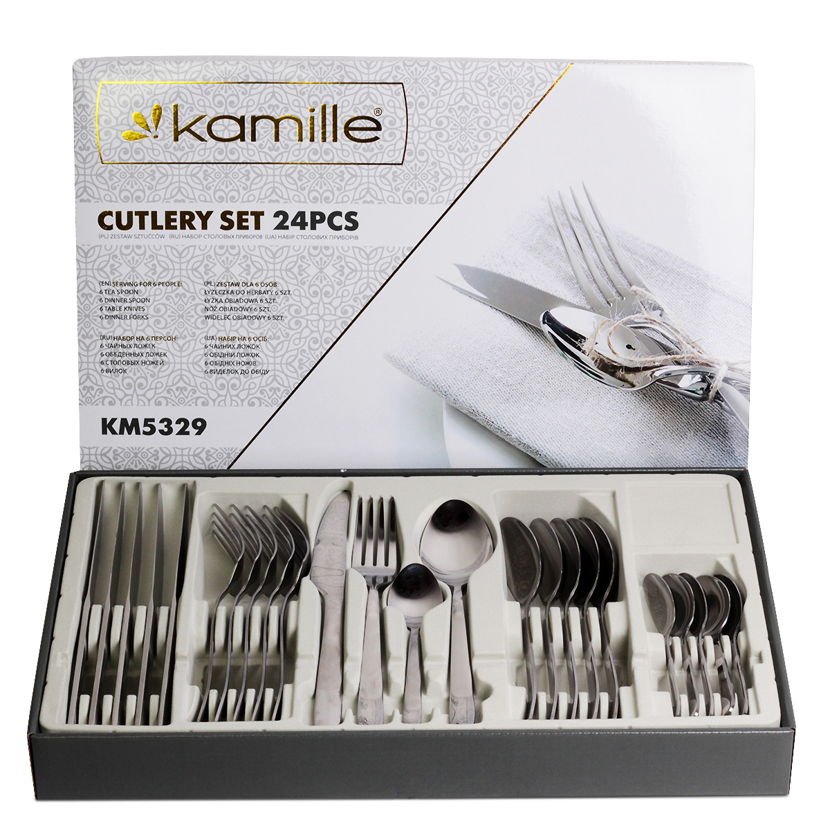 Неотъемлемой составляющей при сервировке стола являются приборы, которые занимают определенное место возле каждого приглашенного гостя. Торжество будет более изысканным, если Ваш стол украсят красивые приборы Kamille. Благодаря своему стильному дизайну и высокому качеству, такие столовые приборы будут не только дополнять красотой Ваши блюда, но и помогут создать хорошую атмосферу для ужина.